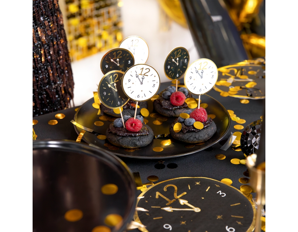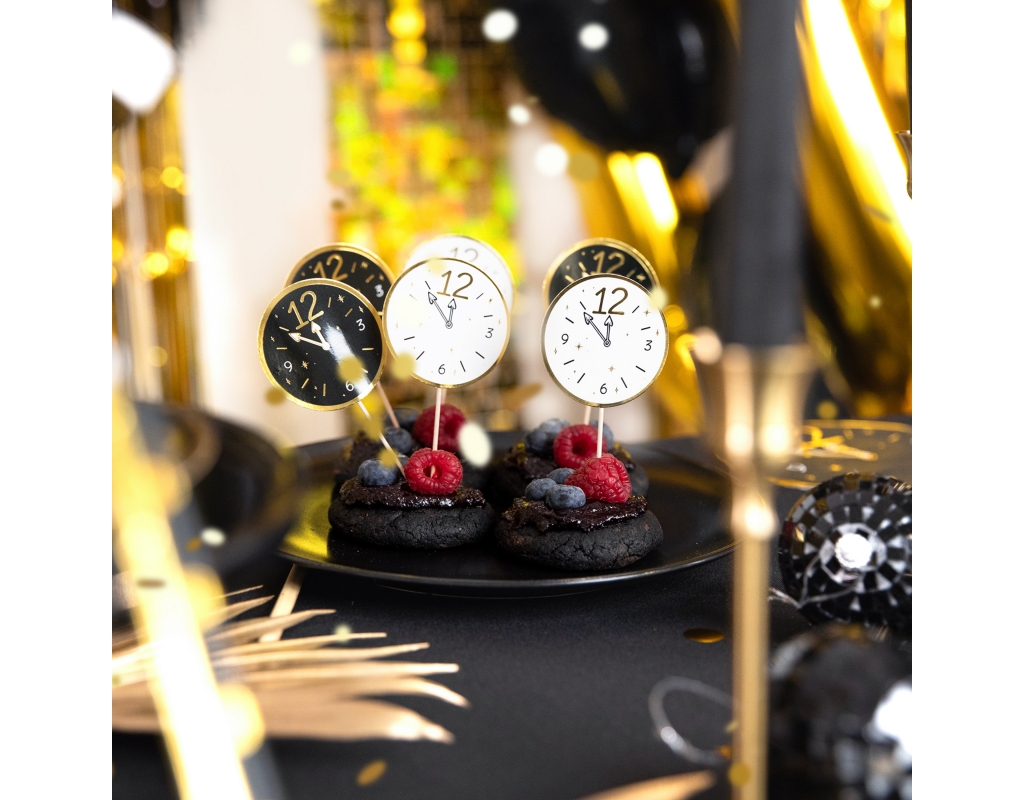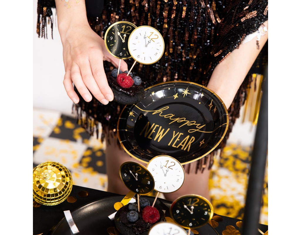DEKORACJE DO MUFFINEK TOPPERY "HAPPY NEW YEAR - ZEGAR" - praktyczne i stylowe, idealne na sylwestrowe i noworoczne przyjęcia.