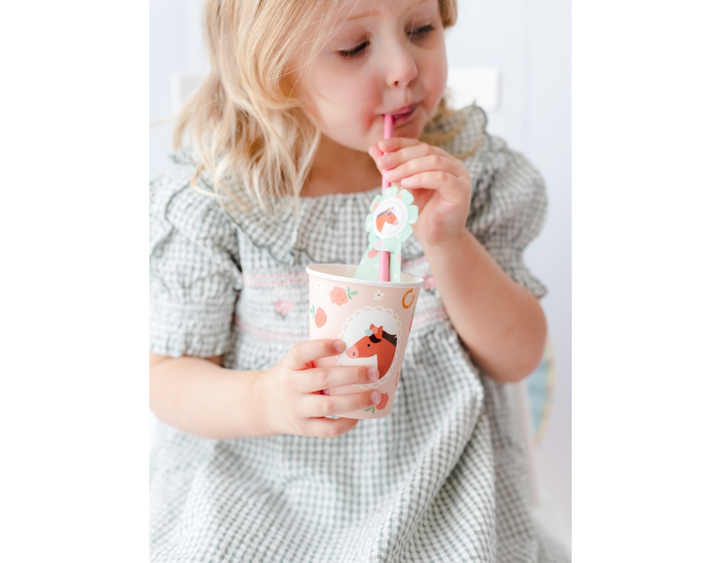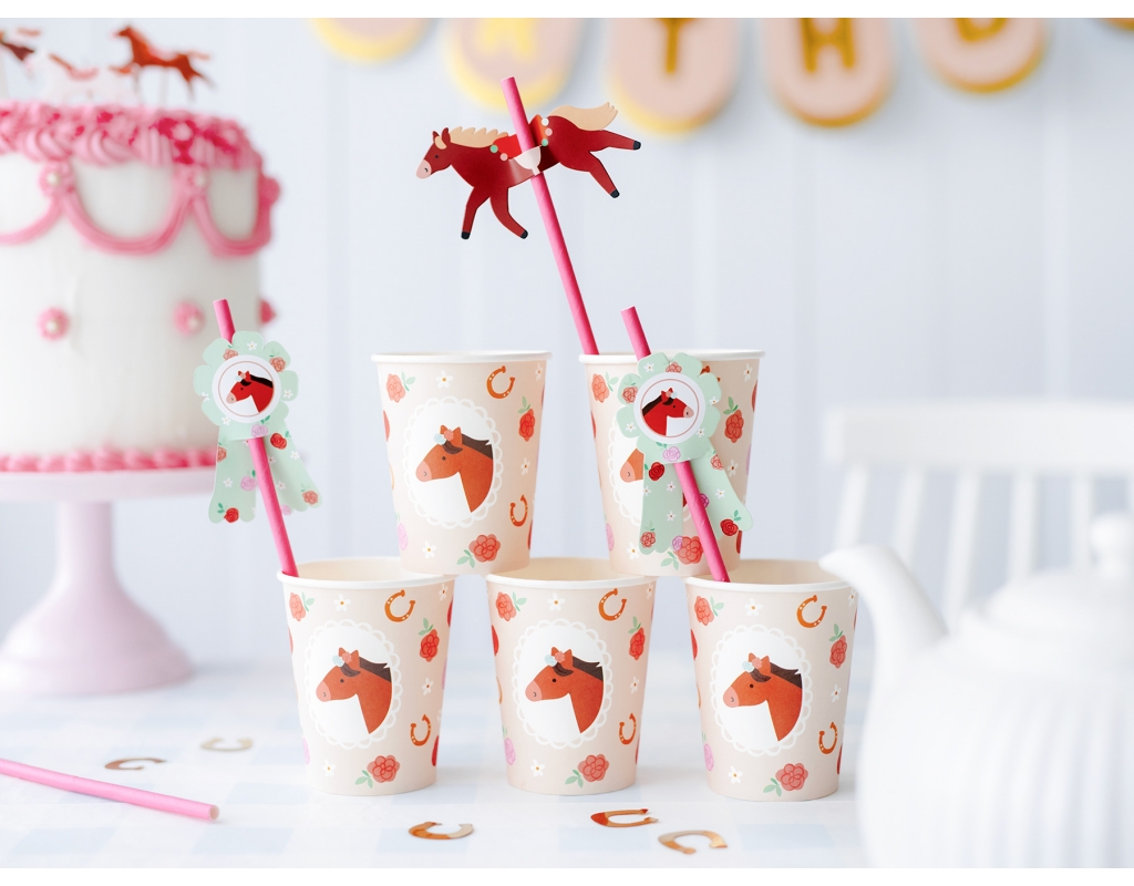 SŁOMKI PAPIEROWE Z NAKŁADKAMI "KONIE" są idealne na przyjęcia urodzinowe, imprezy tematyczne czy spotkania z rodziną i przyjaciółmi, ich uroczy design wprowadzi radosną atmosferę. Razem z KUBECZKAMI PAPIEROWYMI "KONIE" stworzą niezbędny zestaw do podawania soków, napojów gazowanych, lemoniady czy mrożonej herbaty. To doskonały wybór dla wszystkich miłośników koni – zarówno dzieci, jak i dorosłych!