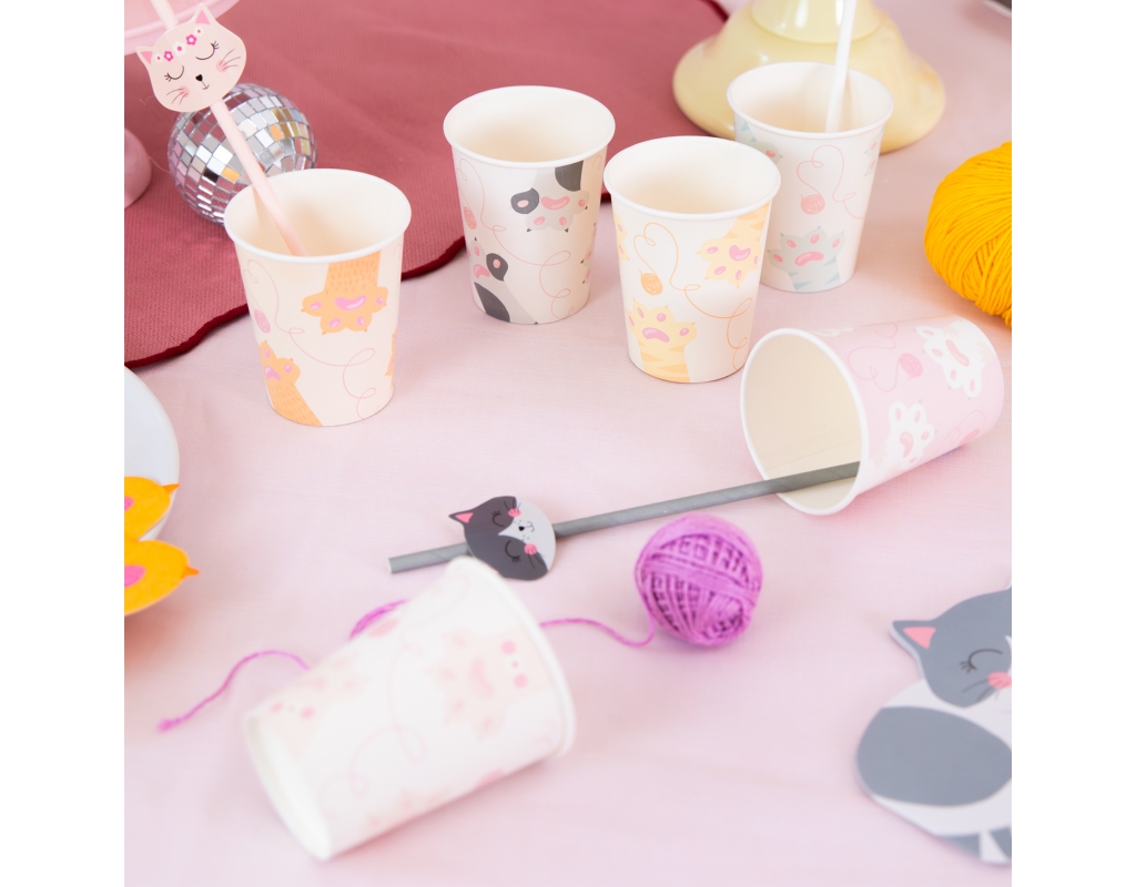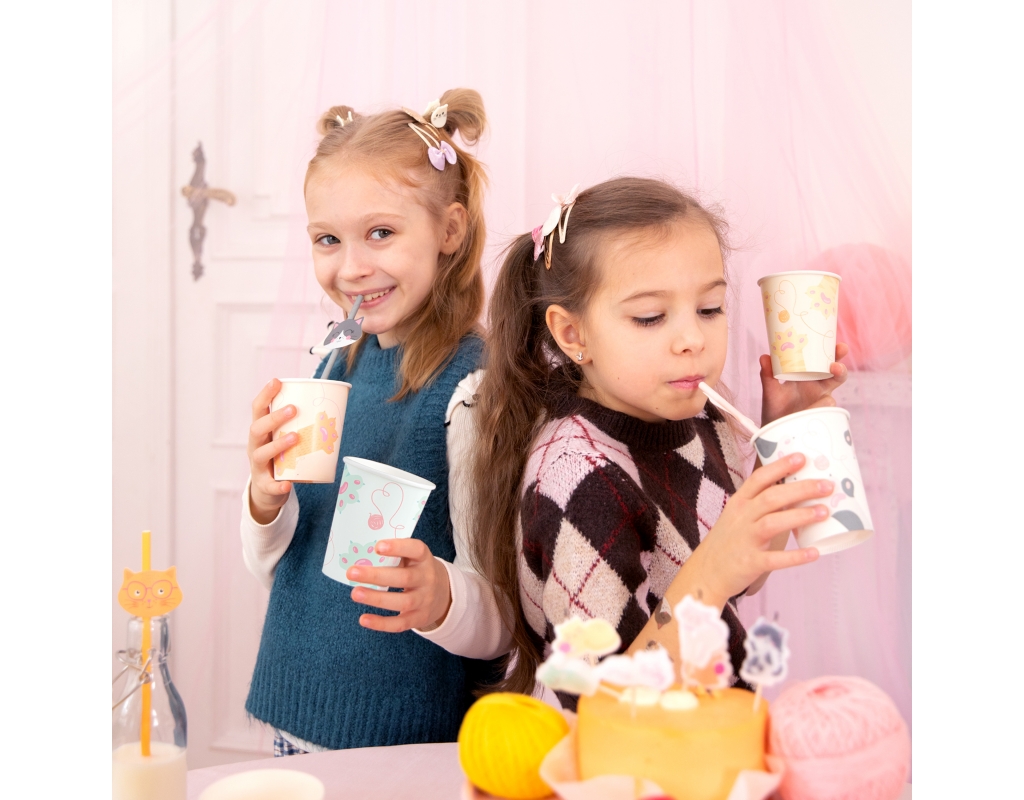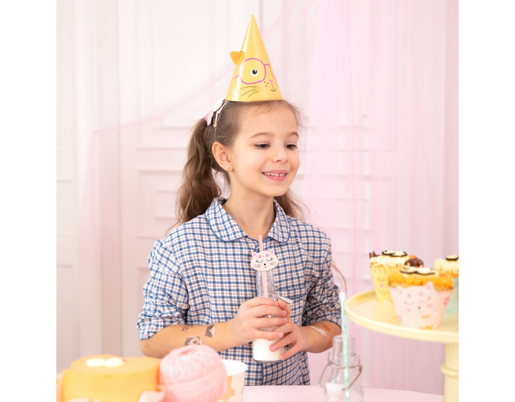 Urocze SŁOMKI PAPIEROWE "KOTKI" to idealny dodatek podczas przyjęć dla dzieci i dorosłych! W jednym zestawie znajduje się 6 słomek. Każda słomka ma inny, wyjątkowy wzór z kotkami – w zestawie znajduje się mix 6 różnych grafik (po 1 sztuce z każdego wzoru), co czyni każdą słomkę niepowtarzalną.