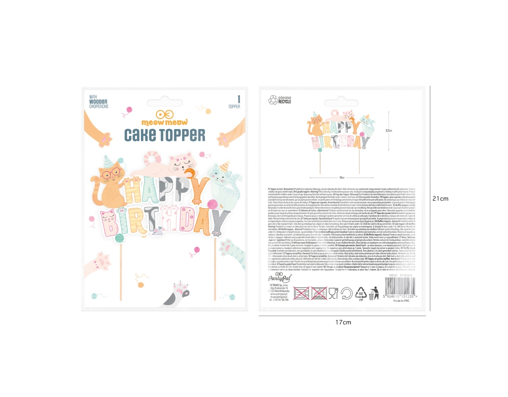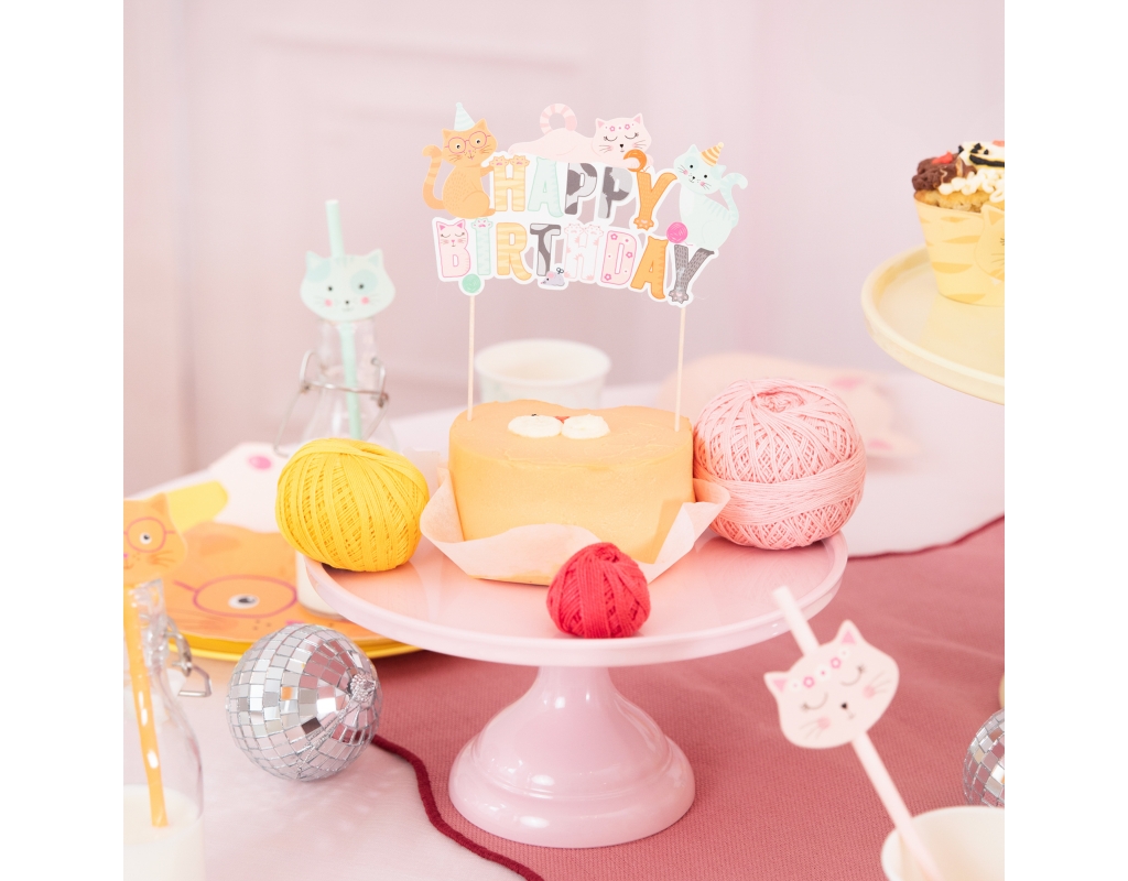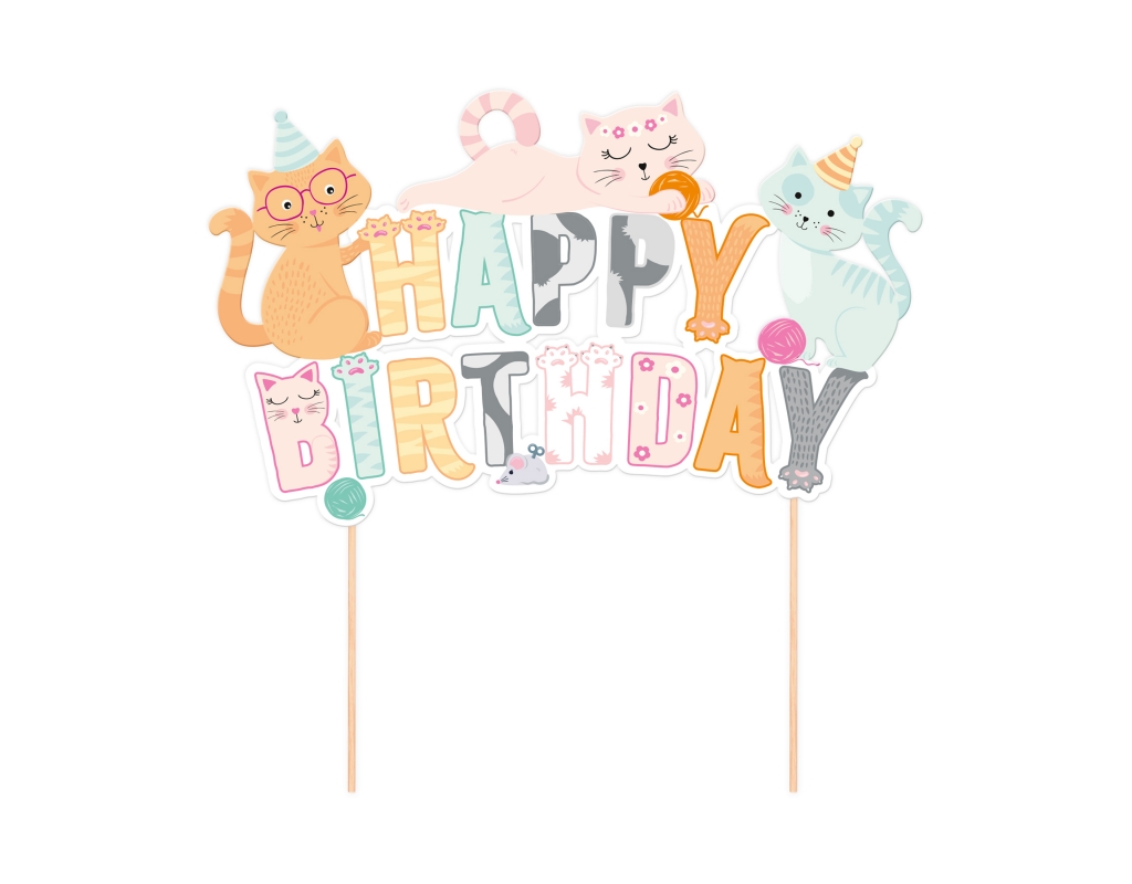 Uroczy TOPPER NA TORT "KOTKI HAPPY BIRTHDAY" to idealny dodatek podczas przyjęć urodzinowych dla dzieci!