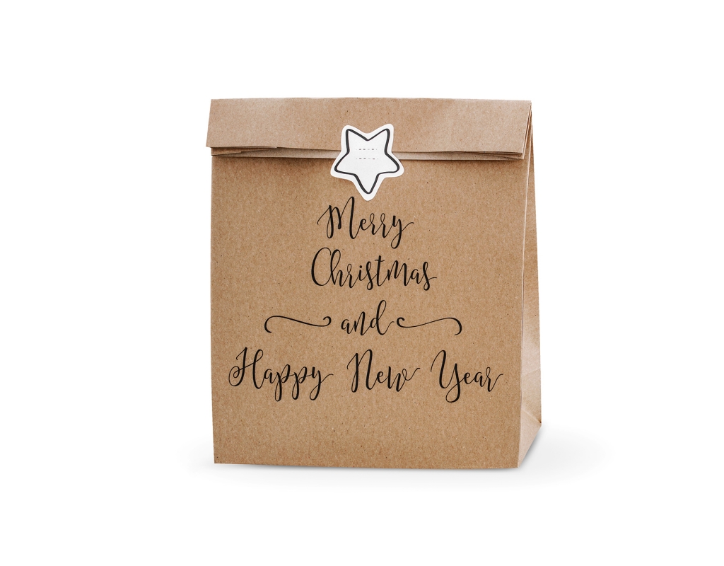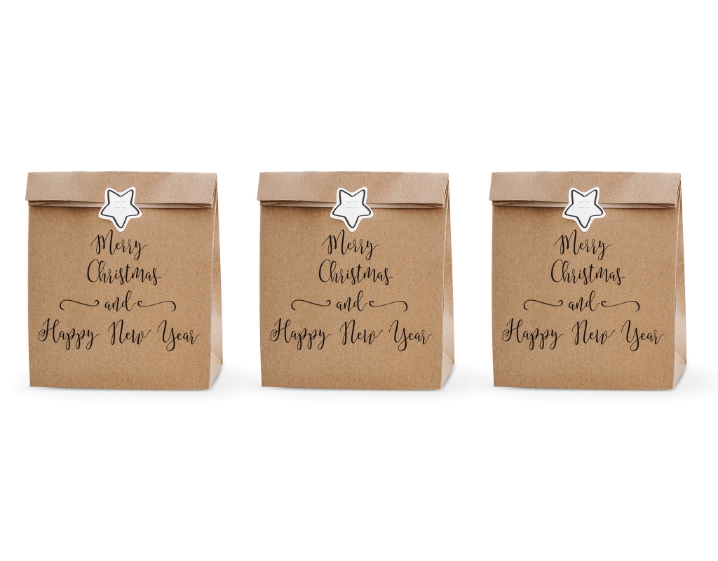 TOREBKI PAPIEROWE NA PREZENTY "MERRY CHRISTMAS AND HAPPY NEW YEAR"
