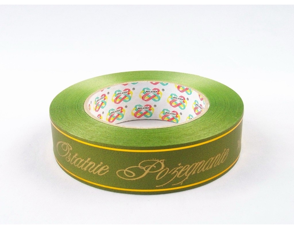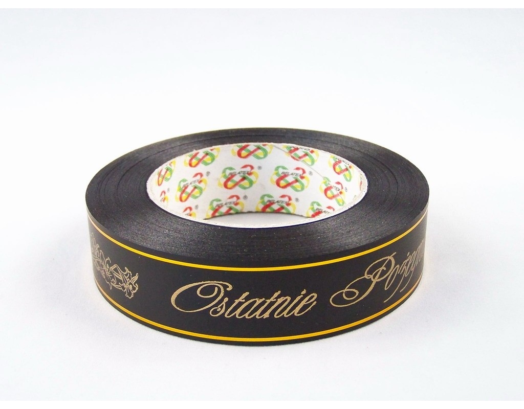 WSTĄŻKA PP POGRZEBOWA Z NAPISEM "OSTATNIE POŻEGNANIE" ZE ZŁOTYMI PASKAMI