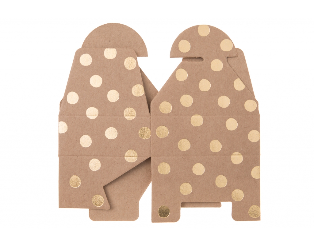 PUDEŁKA SKŁADANE PILLOW BOX "KROPKI" sprawdzą się doskonale jako opakowania na drobne upominki. Można użyć ich do przygotowania prezencików dla gości zaproszonych na przyjęcie . Do pudełek można włożyć biżuterię lub inne drobiazgi. Pudełeczka są do samodzielnego złożenia.