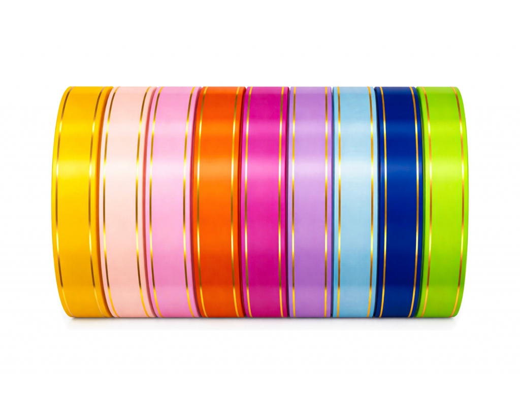 ZESTAW WSTĄŻEK POLIPROPYLENOWYCH PP Z 2 ZŁOTYMI PASKAMI to idealny dodatek do Twoich projektów dekoracyjnych.