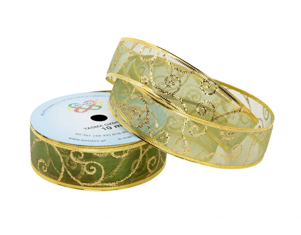 WSTĄŻKA MATERIAŁOWA Z DRUCIKIEM ZE WZOREM "BROKATOWY ORNAMENT"