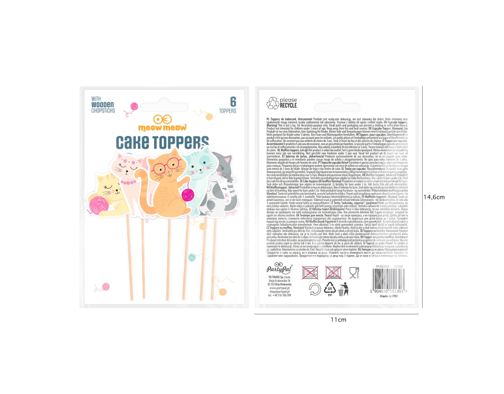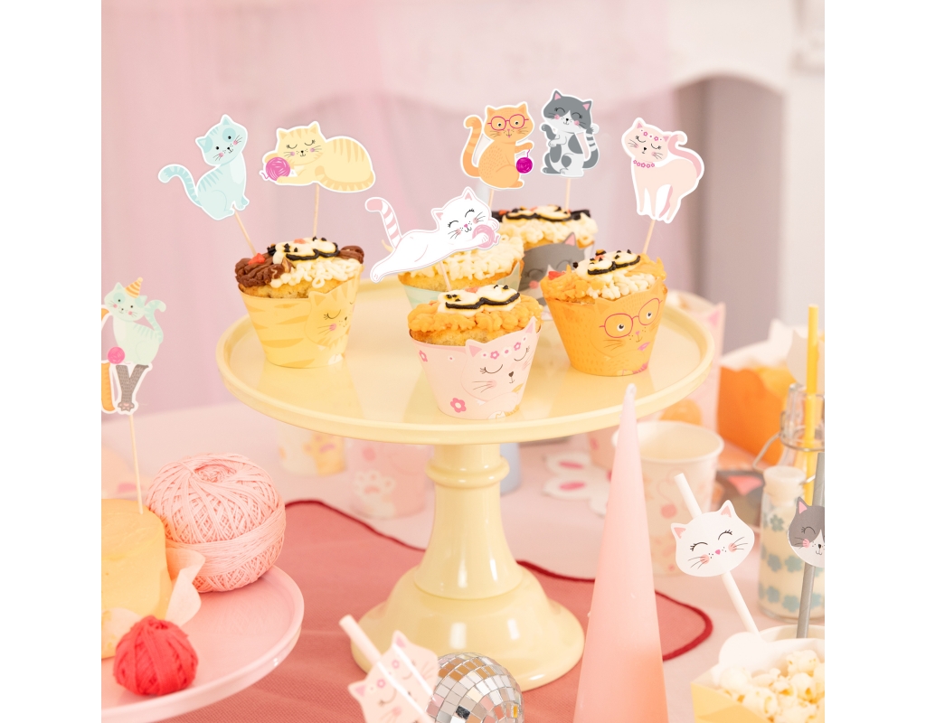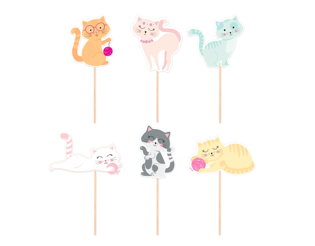 Urocze DEKORACJE DO MUFFINEK TOPPERY "KOTKI" to idealny dodatek podczas przyjęć dla dzieci i dorosłych! W jednym zestawie znajduje się 6 topperów. Każdy topper ma inny, wyjątkowy wzór z kotkami – w zestawie znajduje się mix 6 różnych grafik (po 1 sztuce z każdego wzoru), co czyni każdy topper niepowtarzalnym.